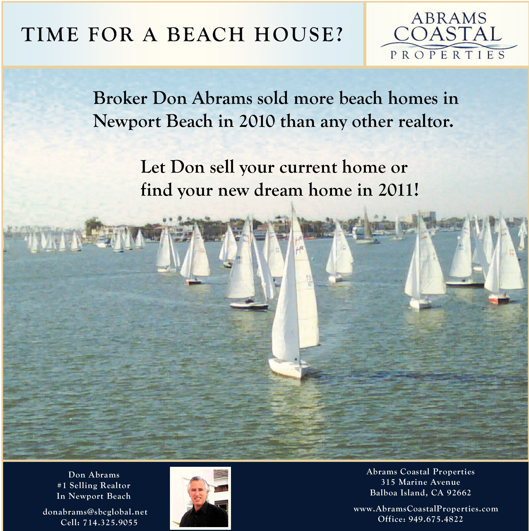 Broker Don Abrams sold more beach homes in Newport Beach in 2010 than any other realtor.