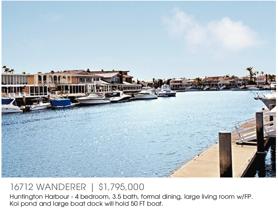 16712 WANDERER | $1,795,000 Huntington Harbour - 4 bedroom, 3.5 bath, formal dining, large living room w/FP. Koi pond and large boat dock will hold 50 FT boat.