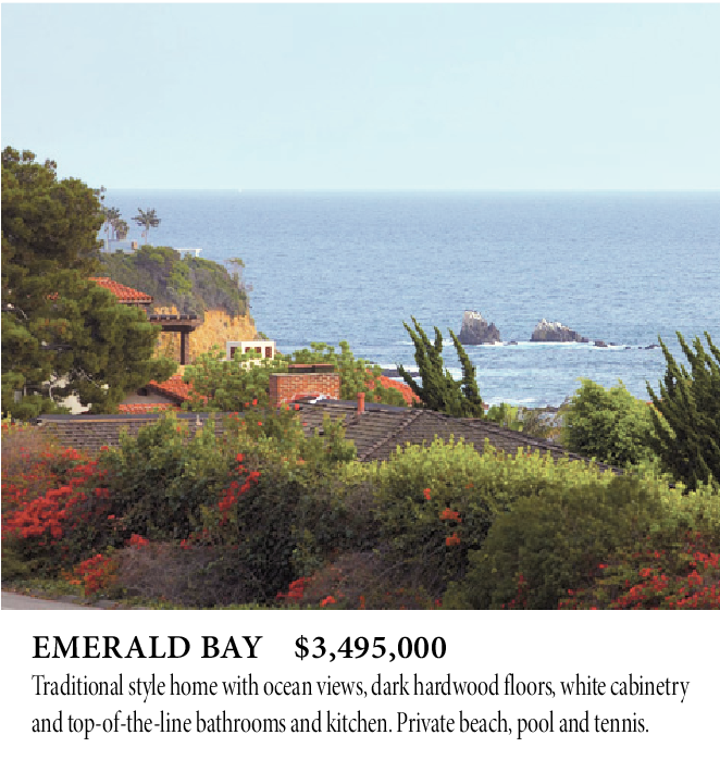 EMERALD BAY $3,495,000 Traditional style home with ocean views, dark hardwood floors, white cabinetry and top-of-the-line bathrooms and kitchen. Private beach, pool and tennis.