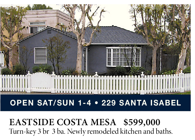 EASTSIDE COSTA MESA $599,000 Turn-key 3 br 3 ba. Newly remodeled kitchen and baths.