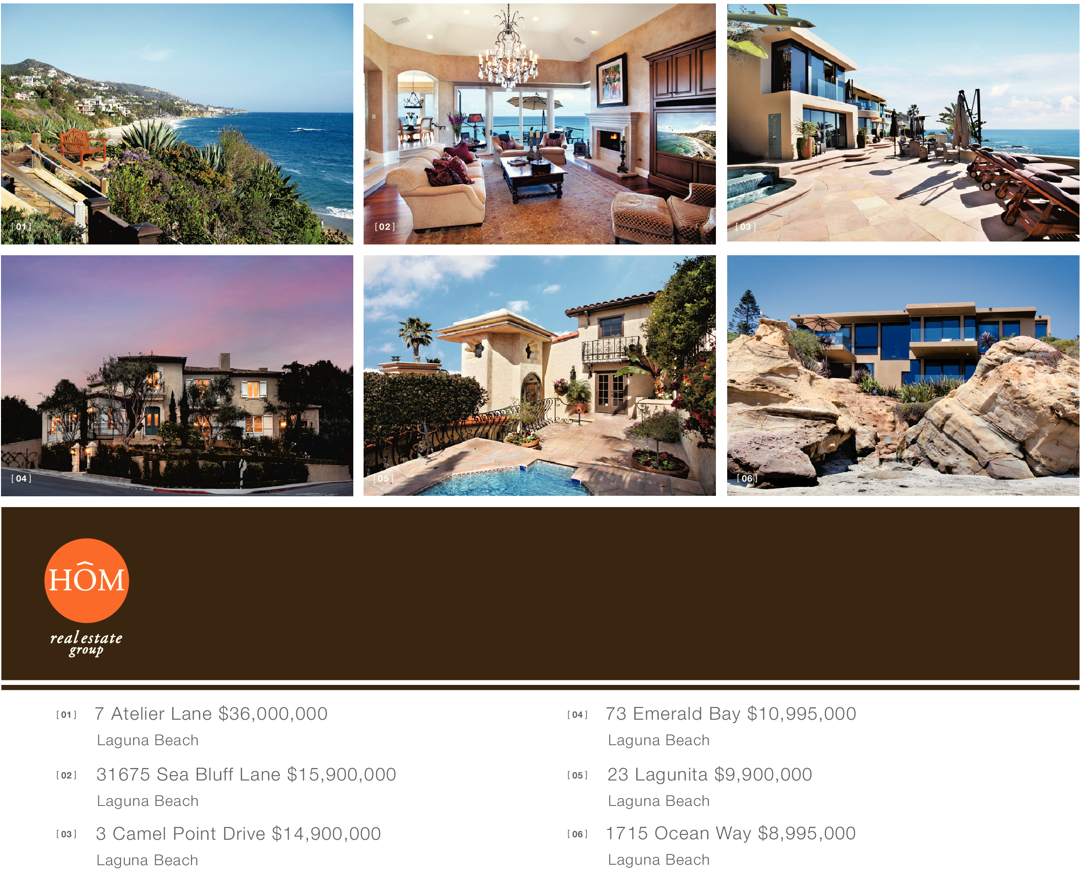 [ 01 ] [ 02 ] [ 03 ] [ 04 ] [ 05 ] [ 06 ] [ 01 ] [ 02 ] [ 03 ] 7 Atelier Lane $36,000,000 Laguna Beach 31675 Sea Bluff Lane $15,900,000 Laguna Beach 3 Camel Point Drive $14,900,000 Laguna Beach 73 Emerald Bay $10,995,000 Laguna Beach [ 04 ] [ 05 ] [ 06 ] 23 Lagunita $9,900,000 Laguna Beach 1715 Ocean Way $8,995,000 Laguna Beach