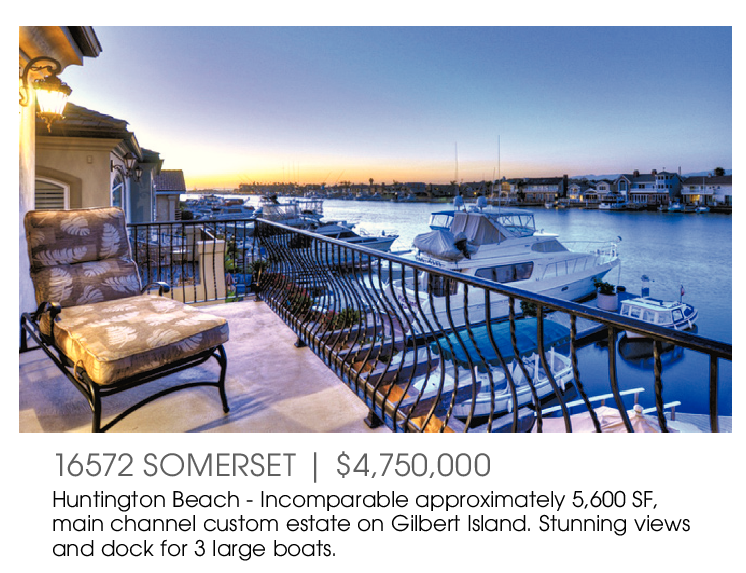 16572 SOMERSET | $4,750,000 Huntington Beach - Incomparable approximately 5,600 SF, main channel custom estate on Gilbert Island. Stunning views and dock for 3 large boats.