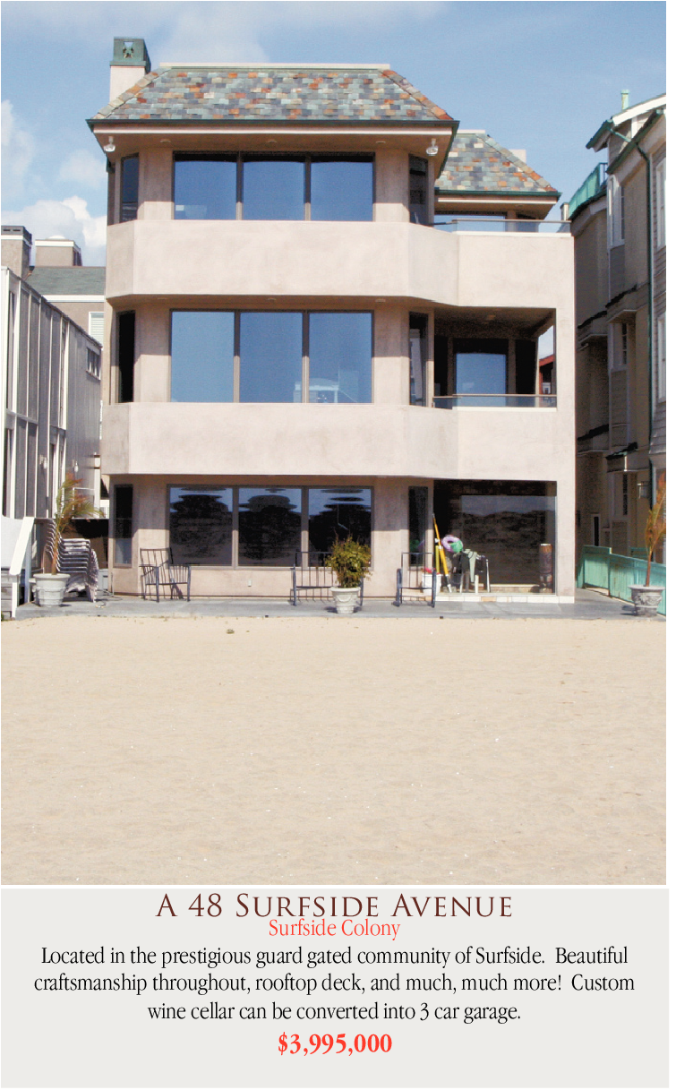A 48 Surfside Avenue Surfside Colony Located in the prestigious guard gated community of Surfside. Beautiful craftsmanship throughout, rooftop deck, and much, much more! Custom wine cellar can be converted into 3 car garage.