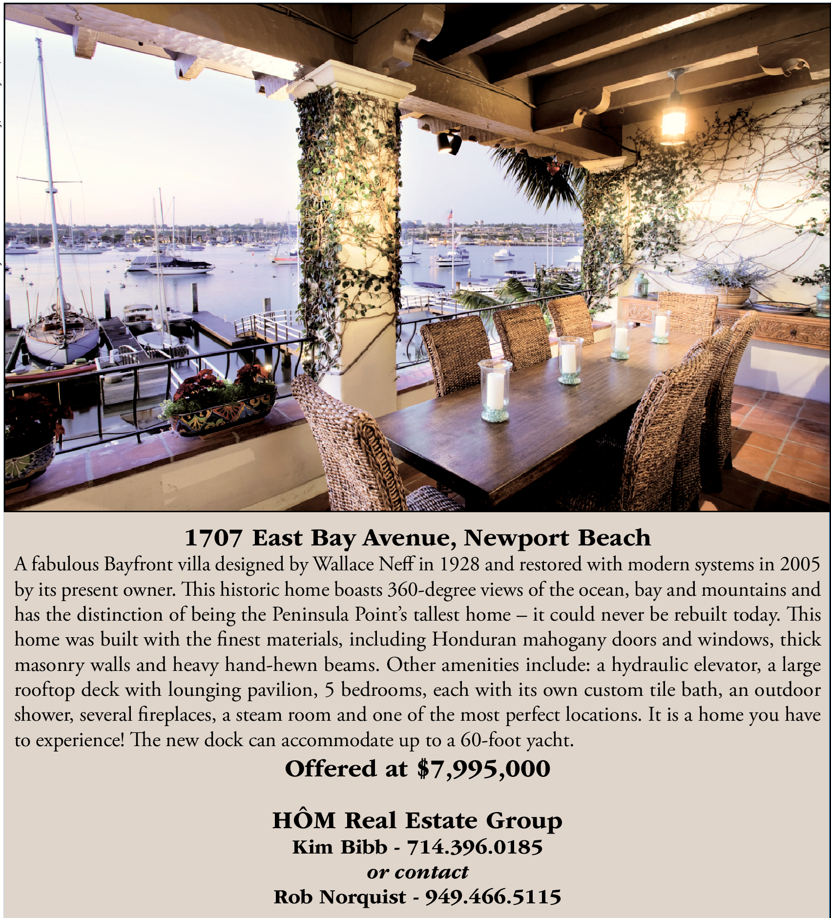 A fabulous Bayfront villa designed by Wallace Neff in 1928 and restored with modern systems in 2005 by its present owner. This historic home boasts 360-degree views of the ocean, bay and mountains and has the distinction of being the Peninsula Point’s tallest home – it could never be rebuilt today. This home was built with the finest materials, including Honduran mahogany doors and windows, thick masonry walls and heavy hand-hewn beams. Other amenities include: a hydraulic elevator, a large rooftop deck with lounging pavilion, 5 bedrooms, each with its own custom tile bath, an outdoor shower, several fireplaces, a steam room and one of the most perfect locations. It is a home you have to experience! The new dock can accommodate up to a 60-foot yacht.
