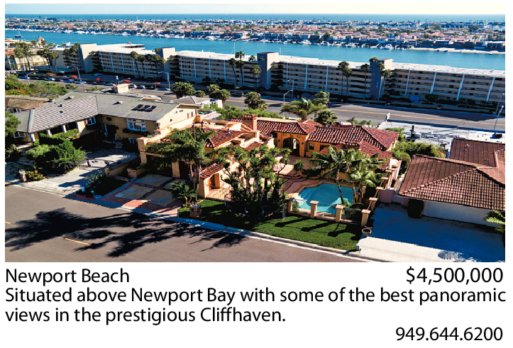 Newport Beach $4,500,000 Situated above Newport Bay with some of the best panoramic views in the prestigious Cliffhaven.