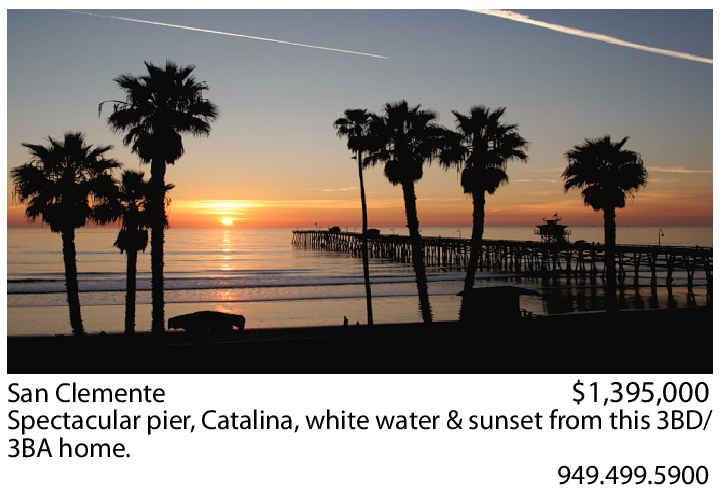 San Clemente $1,395,000 Spectacular pier, Catalina, white water & sunset from this 3BD/ 3BA home.
