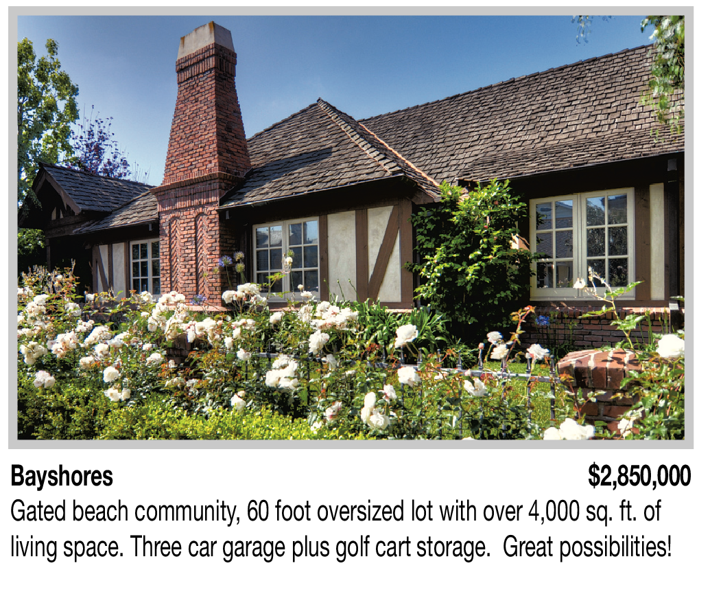 Bayshores $2,850,000 Gated beach community, 60 foot oversized lot with over 4,000 sq. ft. of living space. Three car garage plus golf cart storage. Great possibilities!