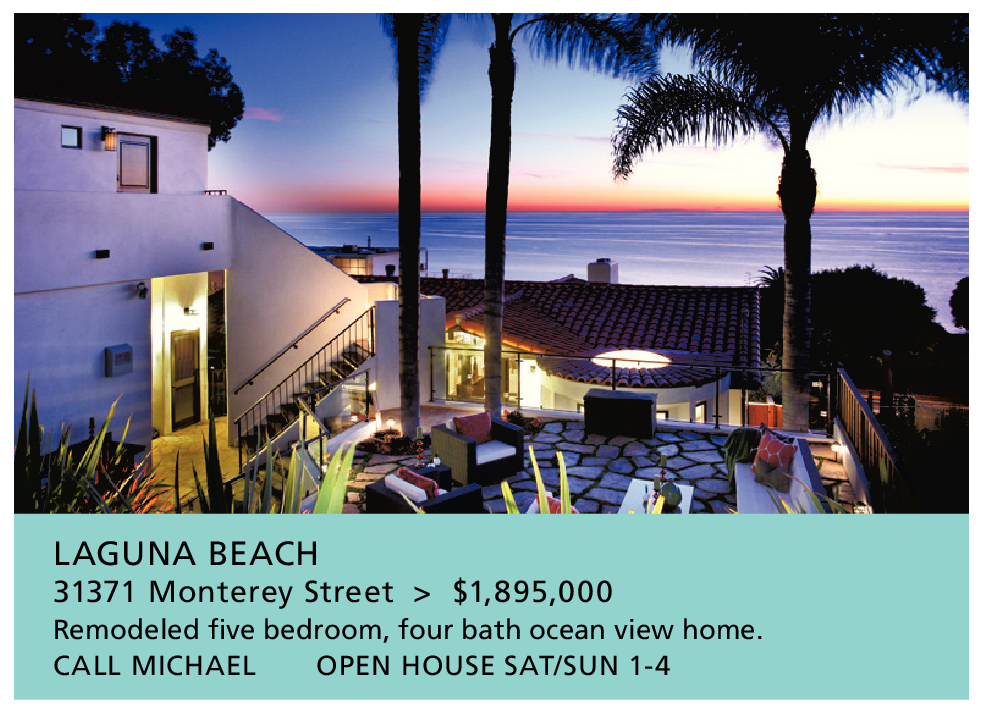 LAGUNA BEACH 31371 Monterey Street > $1,895,000 Remodeled five bedroom, four bath ocean view home. CALL MICHAEL OPEN HOUSE SAT/SUN 1-4