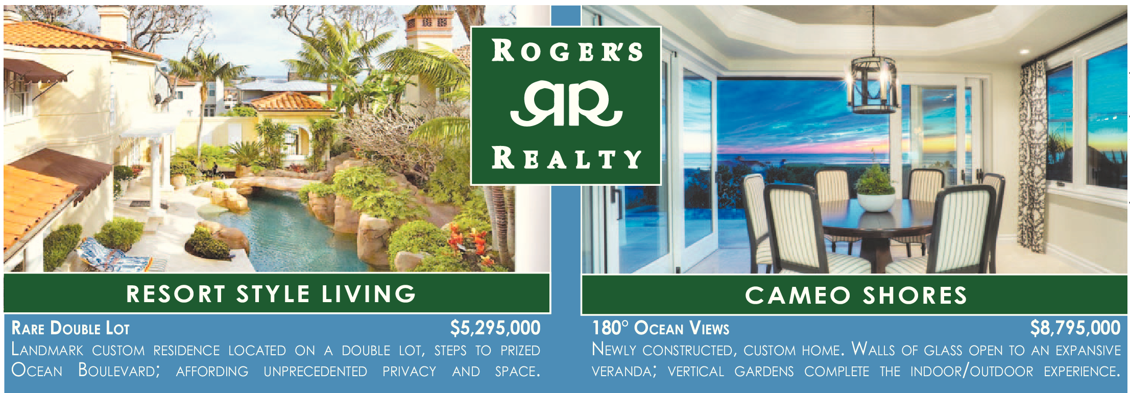 RESORT STYLE LIVING RARE DOUBLE LOT $5,295,000 LANDMARK CUSTOM RESIDENCE LOCATED ON A DOUBLE LOT, STEPS TO PRIZED OCEAN BOULEVARD; AFFORDING UNPRECEDENTED PRIVACY AND SPACE. CAMEO SHORES 180° OCEAN VIEWS $8,795,000 NEWLY CONSTRUCTED, CUSTOM HOME. WALLS OF GLASS OPEN TO AN EXPANSIVE VERANDA; VERTICAL GARDENS COMPLETE THE INDOOR/OUTDOOR EXPERIENCE.