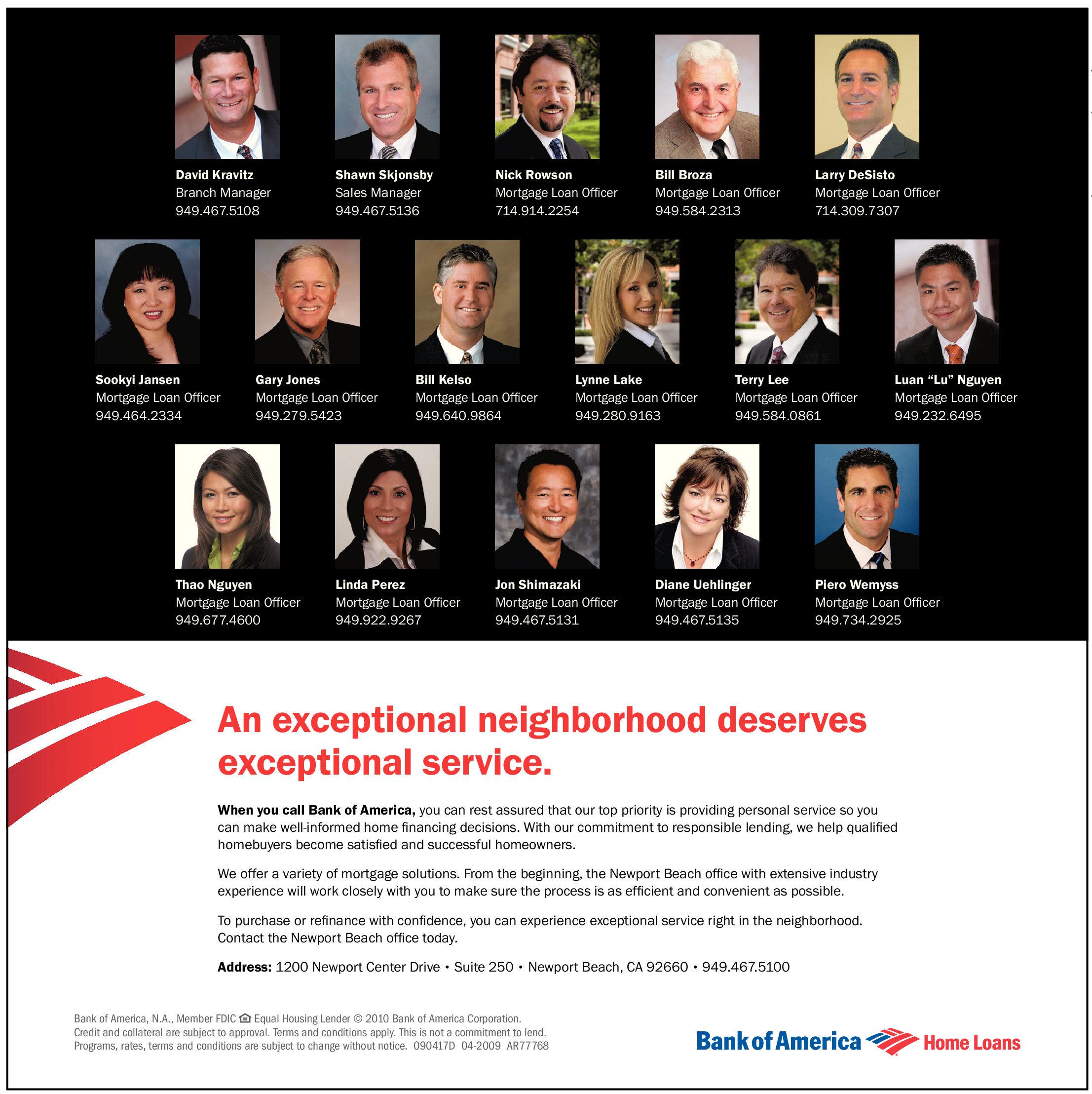 Bank of America, N.A., Member FDIC Equal Housing Lender © 2010 Bank of America Corporation. Credit and collateral are subject to approval. Terms and conditions apply. This is not a commitment to lend. Programs, rates, terms and conditions are subject to change without notice. 090417D 04-2009 AR77768