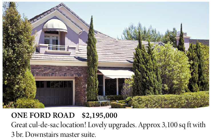 ONE FORD ROAD $2,195,000 Great cul-de-sac location! Lovely upgrades. Approx 3,100 sq ft with 3 br. Downstairs master suite.