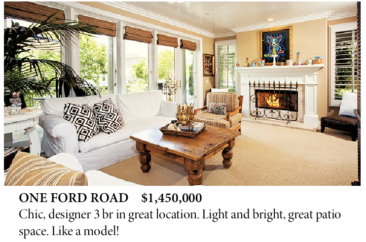 ONE FORD ROAD $1,450,000 Chic, designer 3 br in great location. Light and bright, great patio space. Like a model!
