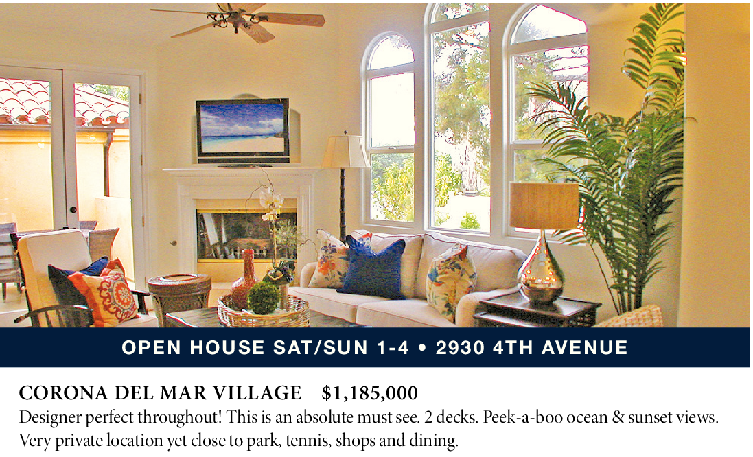CORONA DEL MAR VILLAGE $1,185,000 Designer perfect throughout! This is an absolute must see. 2 decks. Peek-a-boo ocean & sunset views. Very private location yet close to park, tennis, shops and dining.