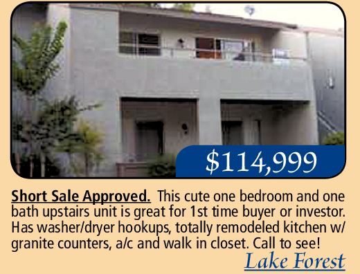 Short Sale Approved. This cute one bedroom and one bath upstairs unit is great for 1st time buyer or investor. Has washer/dryer hookups, totally remodeled kitchen w/ granite counters, a/c and walk in closet. Call to see! Lake Forest