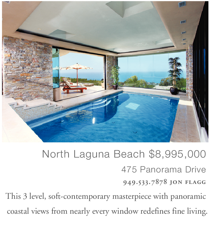 North Laguna Beach $8,995,000 475 Panorama Drive 949.533.7878 jon flagg This 3 level, soft-contemporary masterpiece with panoramic coastal views from nearly every window redefines fine living.