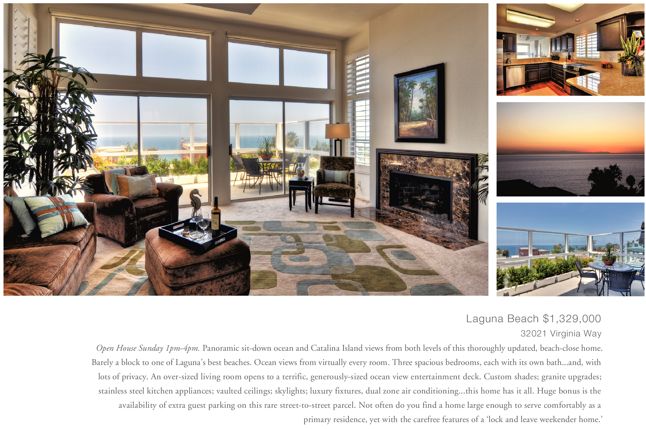 Barely a block to one of Laguna’s best beaches. Ocean views from virtually every room. Three spacious bedrooms, each with its own bath...and, with lots of privacy. An over-sized living room opens to a terrific, generously-sized ocean view entertainment deck. Custom shades; granite upgrades; stainless steel kitchen appliances; vaulted ceilings; skylights; luxury fixtures, dual zone air conditioning...this home has it all. Huge bonus is the availability of extra guest parking on this rare street-to-street parcel. Not often do you find a home large enough to serve comfortably as a primary residence, yet with the carefree features of a ‘lock and leave weekender home.’