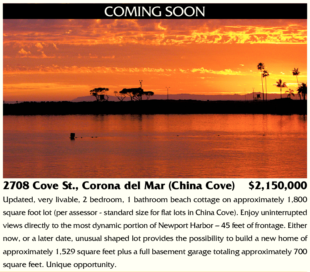 2708 Cove St., Corona del Mar (China Cove) $2,150,000