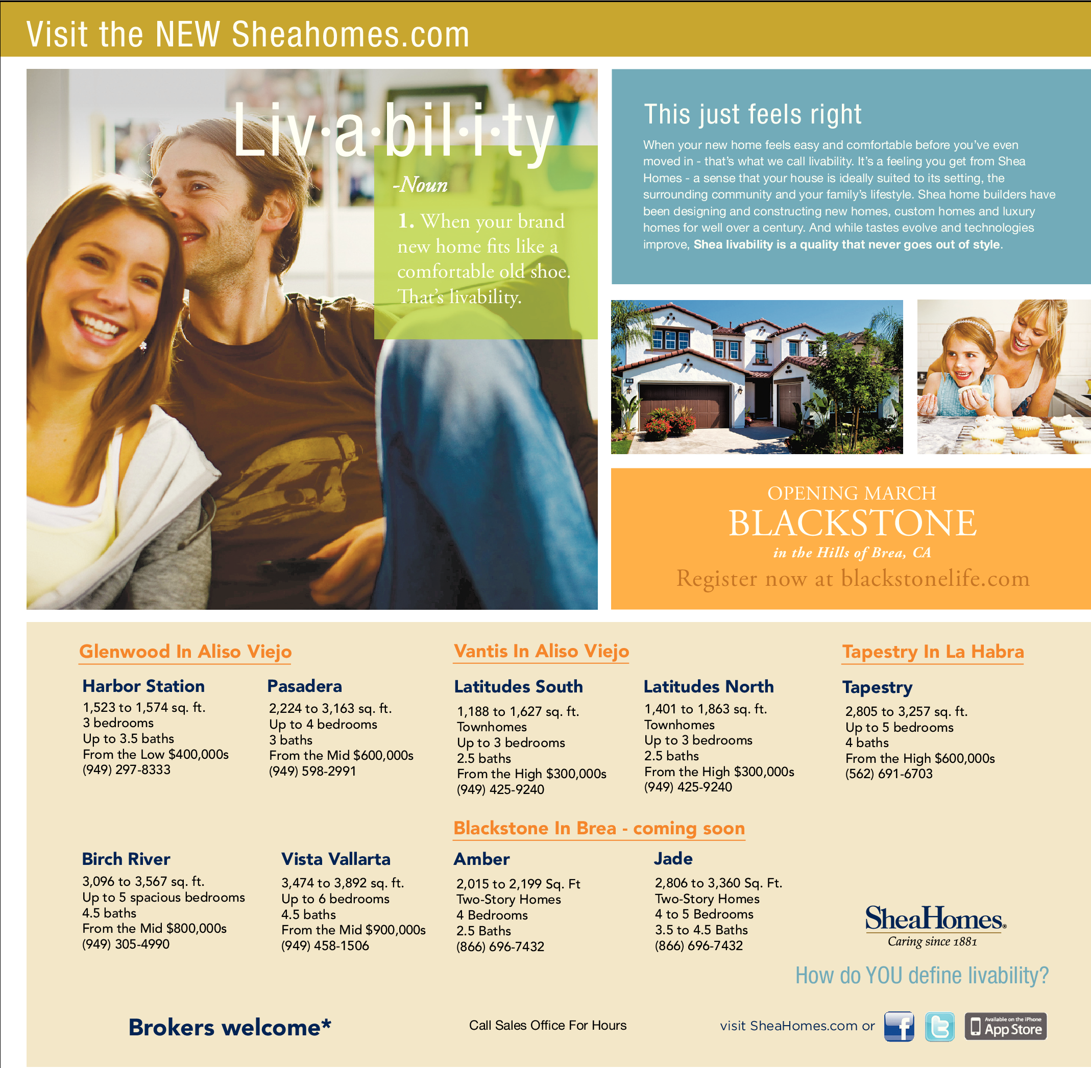 When your new home feels easy and comfortable before you’ve even moved in - that’s what we call livability. It’s a feeling you get from Shea Homes - a sense that your house is ideally suited to its setting, the surrounding community and your family’s lifestyle. Shea home builders have been designing and constructing new homes, custom homes and luxury homes for well over a century. And while tastes evolve and technologies improve, Shea livability is a quality that never goes out of style.