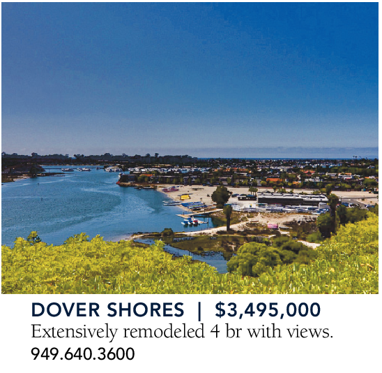 DOVER SHORES | $3,495,000 Extensively remodeled 4 br with views. 949.640.3600