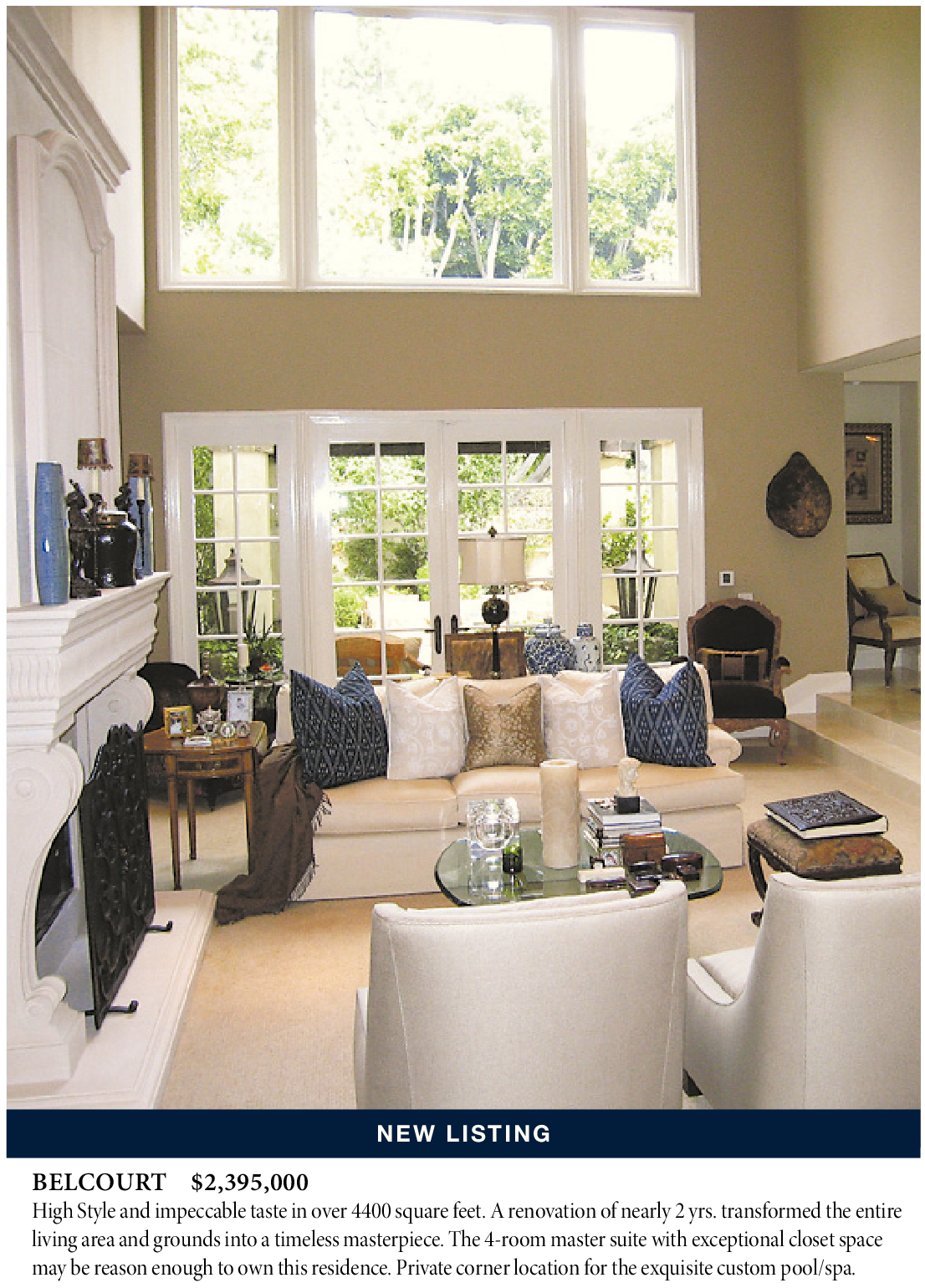 BELCOURT $2,395,000 High Style and impeccable taste in over 4400 square feet. A renovation of nearly 2 yrs. transformed the entire living area and grounds into a timeless masterpiece. The 4-room master suite with exceptional closet space may be reason enough to own this residence. Private corner location for the exquisite custom pool/spa.