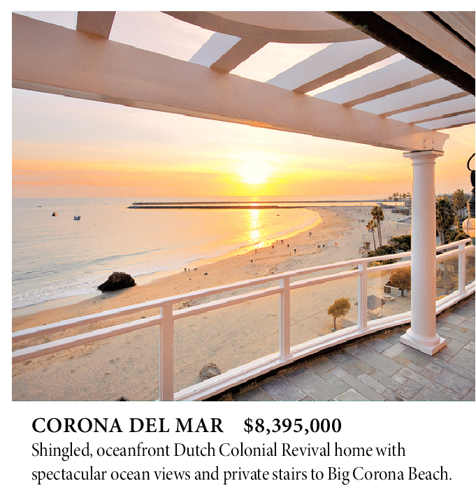 CORONA DEL MAR $8,395,000 Shingled, oceanfront Dutch Colonial Revival home with spectacular ocean views and private stairs to Big Corona Beach.