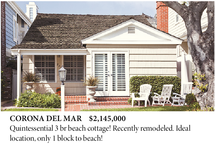 CORONA DEL MAR $2,145,000 Quintessential 3 br beach cottage! Recently remodeled. Ideal location, only 1 block to beach!