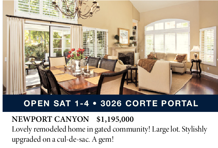 NEWPORT CANYON $1,195,000 Lovely remodeled home in gated community! Large lot. Stylishly upgraded on a cul-de-sac. A gem!
