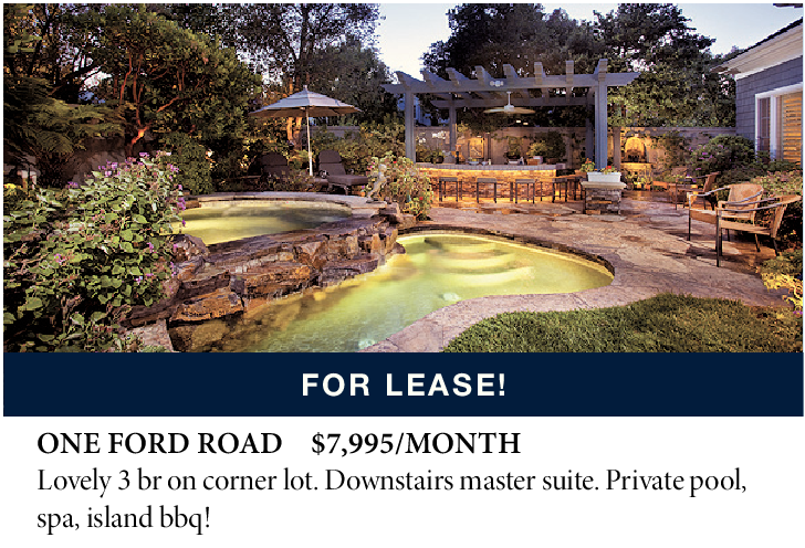 ONE FORD ROAD $7,995/MONTH Lovely 3 br on corner lot. Downstairs master suite. Private pool, spa, island bbq!