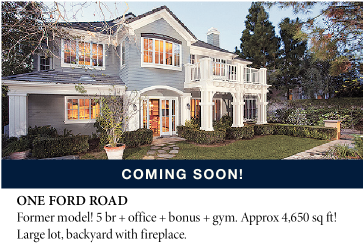 ONE FORD ROAD Former model! 5 br + office + bonus + gym. Approx 4,650 sq ft! Large lot, backyard with fireplace.