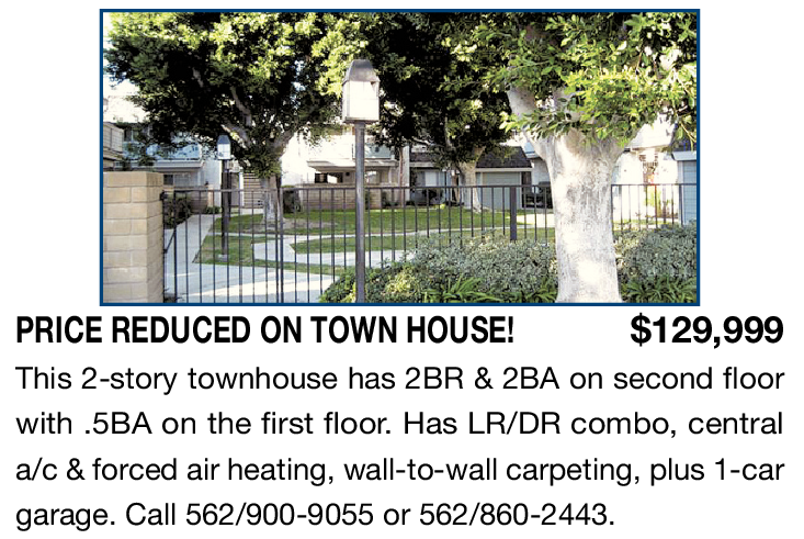 a/c & forced air heating, wall-to-wall carpeting, plus 1-car garage. Call 562/900-9055 or 562/860-2443.