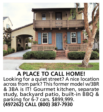 Looking for a quiet street? A nice location across from park? This former model w/3BR & 3BA is IT! Gourmet kitchen, separate study, backyard patio, built-in BBQ & parking for 6-7 cars. $899,999. (497262) CALL (800) 387-7930