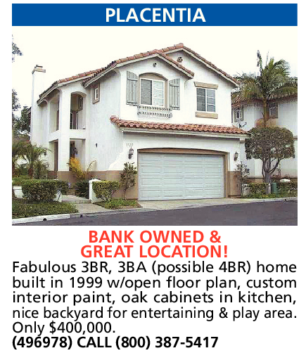 Fabulous 3BR, 3BA (possible 4BR) home built in 1999 w/open floor plan, custom interior paint, oak cabinets in kitchen, nice backyard for entertaining & play area. Only $400,000. (496978) CALL (800) 387-5417