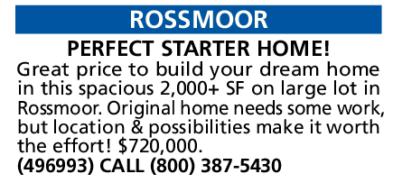 Great price to build your dream home in this spacious 2,000+ SF on large lot in Rossmoor. Original home needs some work, but location & possibilities make it worth the effort! $720,000. (496993) CALL (800) 387-5430