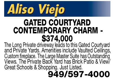 GATED COURTYARD CONTEMPORARY CHARM - $374,000 The Long Private driveway leads to this Gated Courtyard and Private Yards. Amenities include Vaulted Ceilings, Custom fireplace. The Large Master Suite has Outstanding Views. The Private Back Yard has Brick Patio & View/ Great Schools & Shopping. Just Listed.