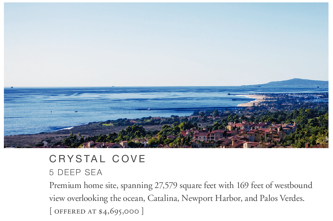 5 DEEP SEA Premium home site, spanning 27,579 square feet with 169 feet of westbound view overlooking the ocean, Catalina, Newport Harbor, and Palos Verdes. [ offered at $4,695,000 ]