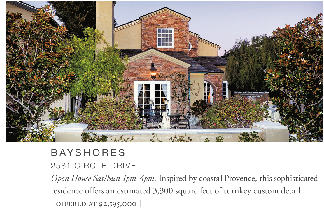 2581 CIRCLE DRIVE Open House Sat/Sun 1pm-4pm. Inspired by coastal Provence, this sophisticated residence offers an estimated 3,300 square feet of turnkey custom detail. [ offered at $2,595,000 ]