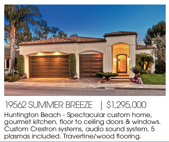 19562 SUMMER BREEZE | $1,295,000 Huntington Beach - Spectacular custom home, gourmet kitchen, floor to ceiling doors & windows. Custom Crestron systems, audio sound system, 5 plasmas included. Travertine/wood flooring.