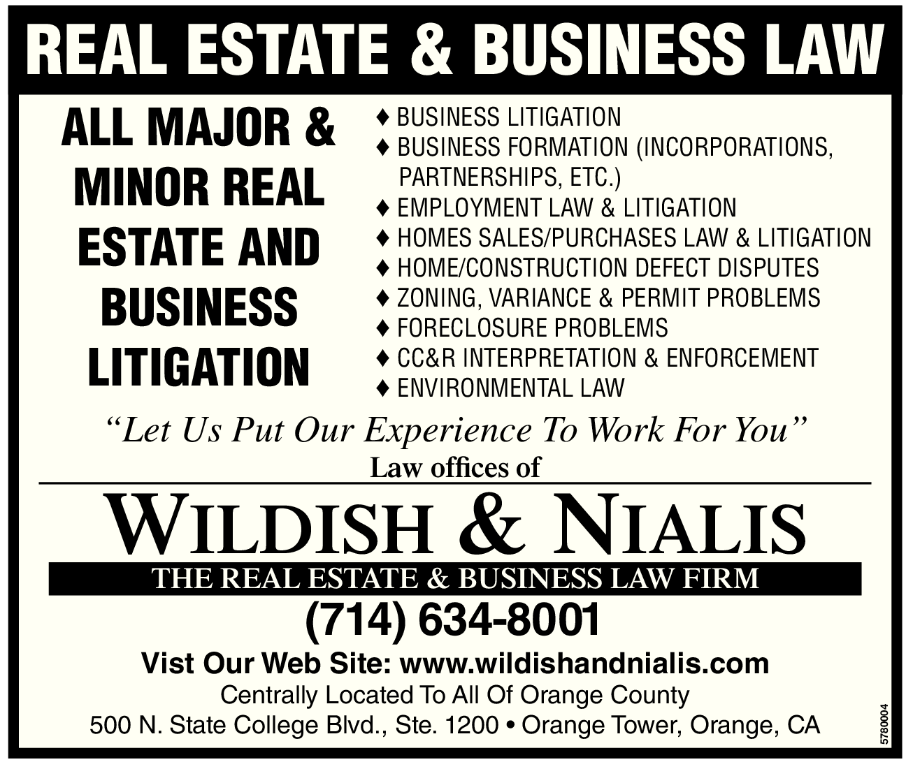 EMPLOYMENT LAW & LITIGATION HOMES SALES/PURCHASES LAW & LITIGATION HOME/CONSTRUCTION DEFECT DISPUTES ZONING, VARIANCE & PERMIT PROBLEMS FORECLOSURE PROBLEMS CC&R INTERPRETATION & ENFORCEMENT ENVIRONMENTAL LAW