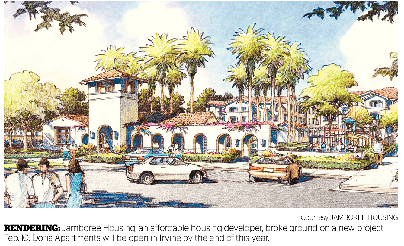 Irvine-based Jamboree Housing broke ground Feb. 10 on the Doria Apartments, a 134 unit apartment complex located at 1000 Crested Bird, which will be built in two phases and ready for occupancy of the first 60 units by the end of the year, said Mary Jo Goelzer, company chief operations officer.