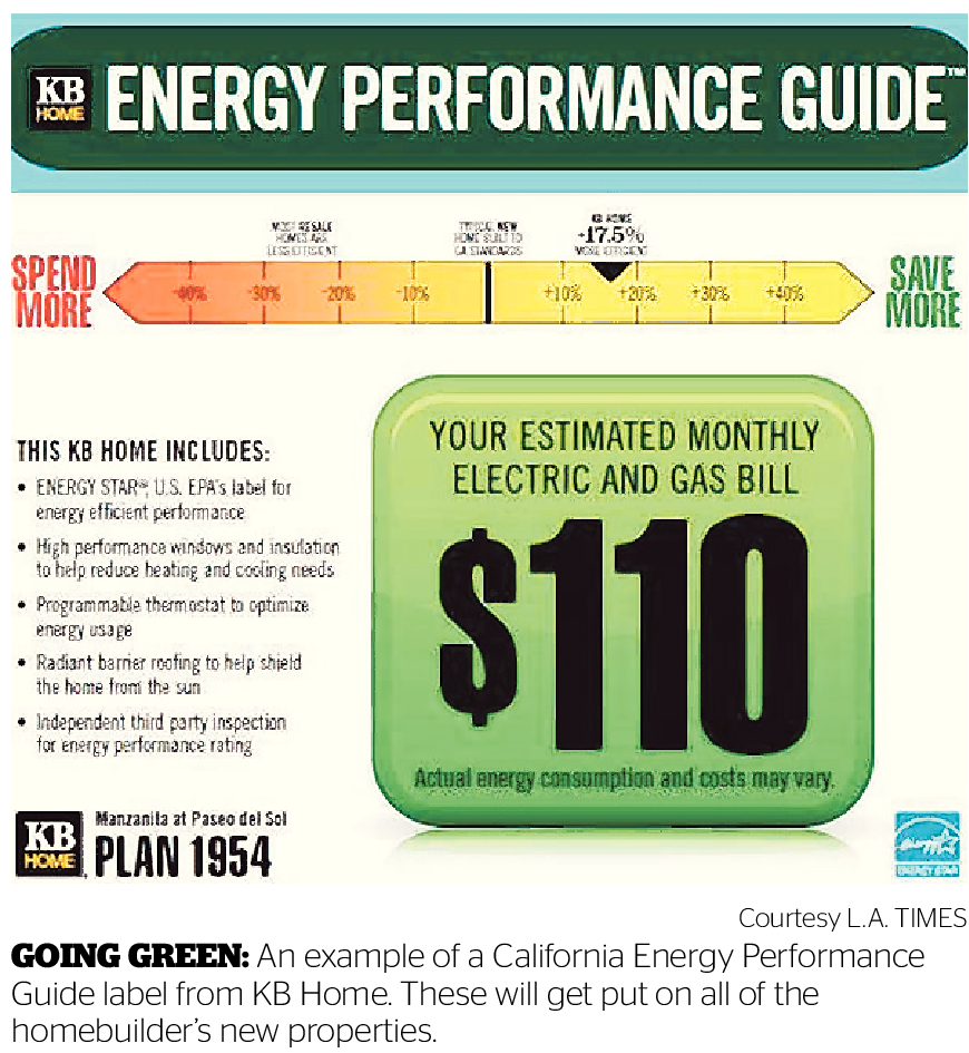 Los Angeles-based homebuilder KB Home is taking a page from the car industry by slapping an efficiency label on all its new properties.