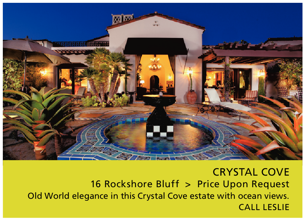 CRYSTAL COVE 16 Rockshore Bluff > Price Upon Request Old World elegance in this Crystal Cove estate with ocean views.
