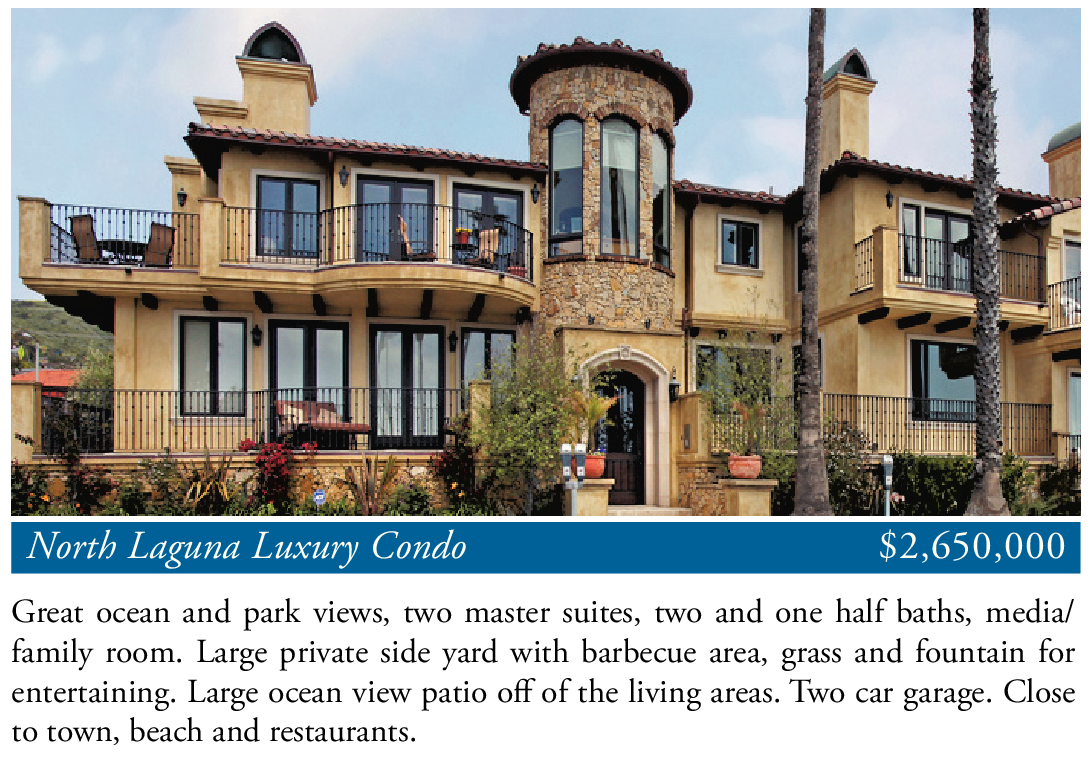 Great ocean and park views, two master suites, two and one half baths, media/ family room. Large private side yard with barbecue area, grass and fountain for entertaining. Large ocean view patio off of the living areas. Two car garage. Close to town, beach and restaurants.