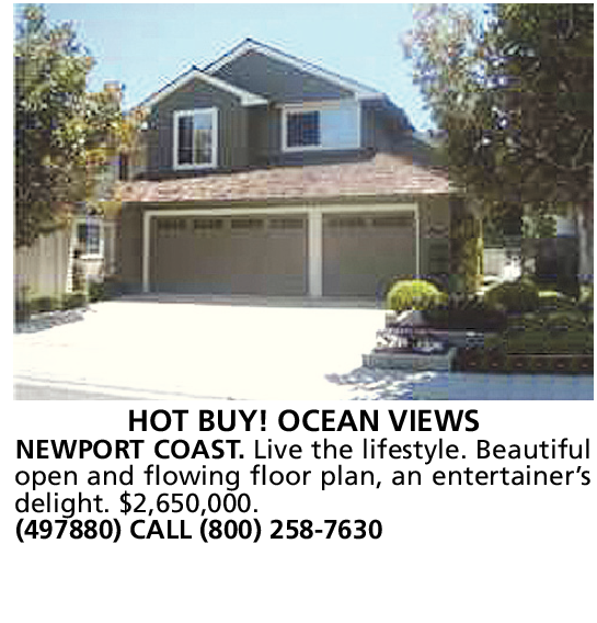 HOT BUY! OCEAN VIEWS NEWPORT COAST. Live the lifestyle. Beautiful open and flowing floor plan, an entertainer’s delight. $2,650,000.