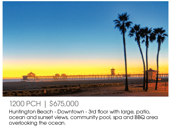 1200 PCH | $675,000 Huntington Beach - Downtown - 3rd floor with large, patio, ocean and sunset views, community pool, spa and BBQ area overlooking the ocean.
