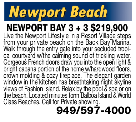 NEWPORT BAY 3 + 3 $219,900 Live the Newport Lifestyle in a Resort Village steps from your private beach on the Back Bay Marina. Walk through the entry gate into your secluded tropical courtyard w/the calming sound of trickling water.