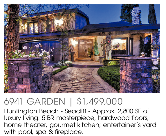 6941 GARDEN | $1,499,000 Huntington Beach - Seacliff - Approx. 2,800 SF of luxury living. 5 BR masterpiece, hardwood floors, home theater, gourmet kitchen; entertainer’s yard with pool, spa & fireplace.