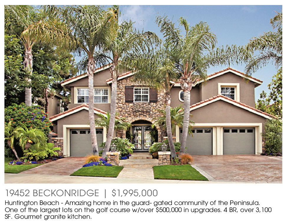 19452 BECKONRIDGE | $1,995,000 Huntington Beach - Amazing home in the guard- gated community of the Peninsula. One of the largest lots on the golf course w/over $500,000 in upgrades. 4 BR, over 3,100 SF. Gourmet granite kitchen.