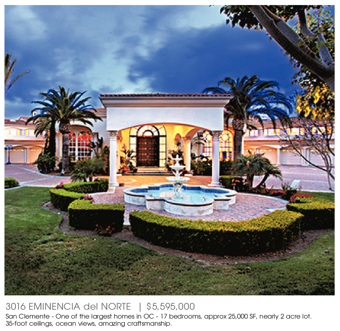 3016 EMINENCIA del NORTE | $5,595,000 San Clemente - One of the largest homes in OC - 17 bedrooms, approx 25,000 SF, nearly 2 acre lot. 35-foot ceilings, ocean views, amazing craftsmanship.