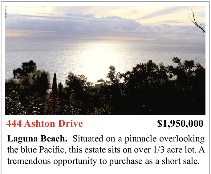 Laguna Beach. Situated on a pinnacle overlooking the blue Pacific, this estate sits on over 1/3 acre lot. A tremendous opportunity to purchase as a short sale.
