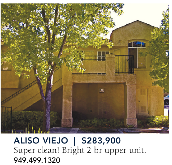 ALISO VIEJO | $283,900 Super clean! Bright 2 br upper unit. 949.499.1320